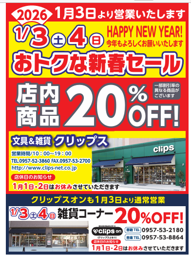 2026年 年始の営業及び新春おトクな2日間(1/3・4)のお知らせ